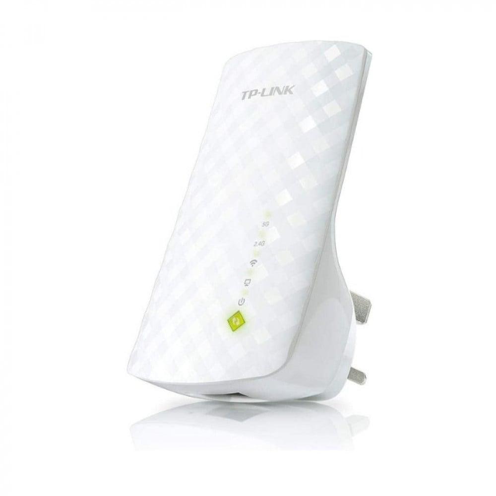 جهاز مقوّي شبكة Wi-Fi ثنائي الموجة من تي بي لينك، يعمل على تحسين قوة الإشارة وتوسيع نطاق التغطية في جميع أرجاء المكان.